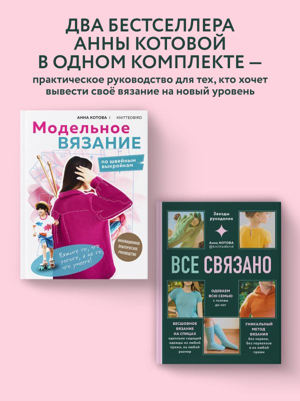 Комплект из 2-х книг Анны Котовой: ВСЕ СВЯЗАНО. Бесшовное вязание на спицах идеально сидящей одежды из любой пряжи, на любой размер. Одеваем всю семью с головы до ног. Уникальный метод вязания без нервов, без перевязов и из любой пряжи и МОДЕЛЬНОЕ ВЯЗАНИЕ по швейным выкройкам. Инновационное практическое руководство