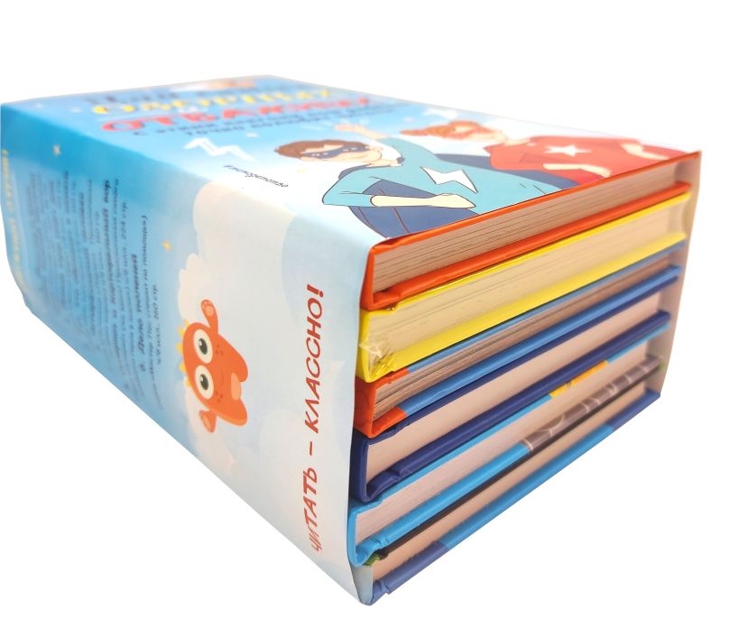 Комплект в упаковке-бандероли с книгами из разных приключенческих серий, которые помогут ребёнку, который ещё только погружается в мир книг и ищет историю себе по душе.