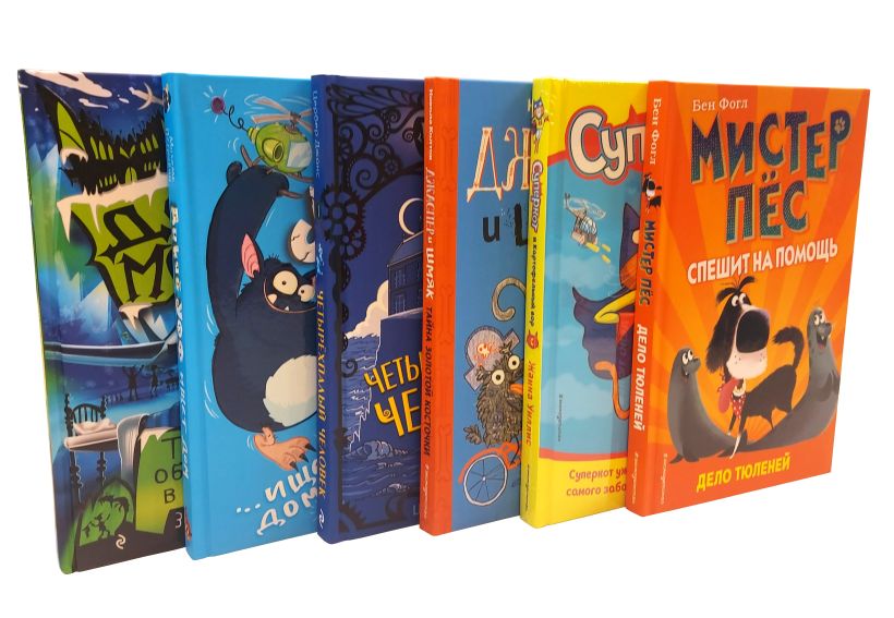 В этом комплекте вас поджидают весёлые и захватывающие книги с интересным сюжетом, небольшим объёмом текста и чёрно-белыми картинками – идеальное сочетание для юного читателя, который ещё не определился, что ему нравится. Это книги из совершенно разных серий, но все они увлекательные и простые. Отважный пёс-спасатель, смешной доисторический питомец, звери-детективы, самая невероятная на свете школа, кот-супергерой и отель для гостей из других миров! Вы даже не представляете, какие невероятные приключения вам предстоят!