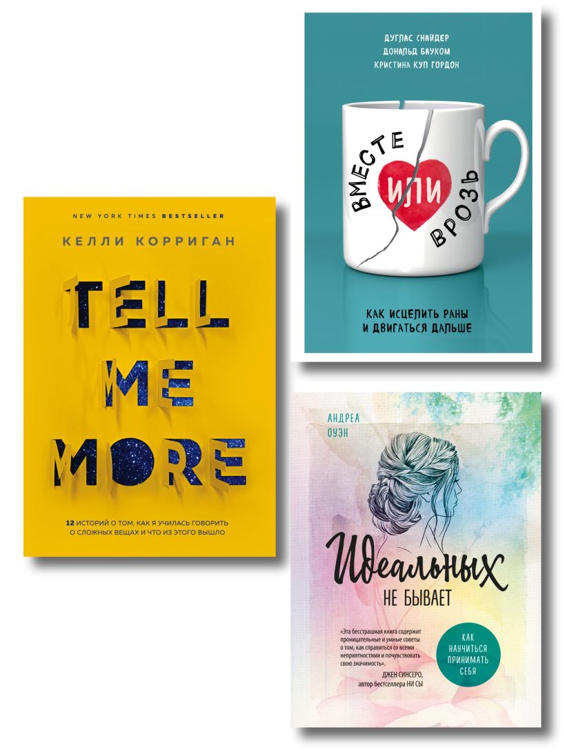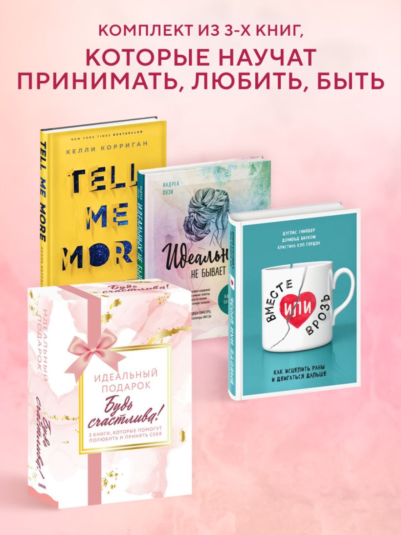 Комплект. Идеальный подарок "Будь счастлива!" 3 книги, которые помогут полюбить и принять себя (Идеальных не бывает + Вместе или врозь + Tell me more)