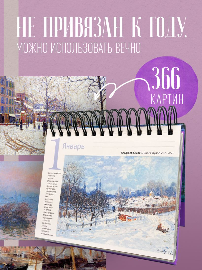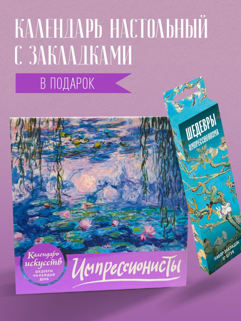 Комплект из вечного календаря и набора закладок! Вечный календарь с признанными шедеврами - это креативная инновация во Вселенной искусства. Он совмещает в себе достоинства картинной галереи, путеводителя по многочисленным течениям в искусстве и функциональные достоинства обычного календаря! В комплекте вы приобретаете набор закладок, чтобы прекрасное точно сопровождало вас везде в течение дня! Приобретение этого комплекта сделает вашу жизнь удобнее, красивее и привнесет в нее пользы, познания нового и интересного! Этот комплект — это не просто аксессуары, это вдохновение, доступное каждый день! Порадуйте себя или своих близких искренним подарком, который объединяет в себе утонченность классического искусства и современный стиль жизни.