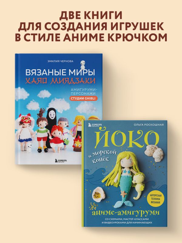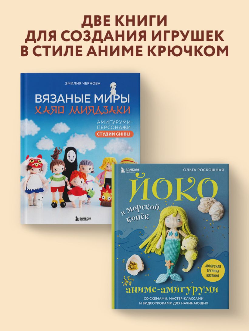 Комплект из 2-х книг Йоко и морской конёк. Аниме-амигуруми со схемами, мастер-классами и видеоуроками для начинающих и Вязаные миры Хаяо Миядзаки. Амигуруми-персонажи студии Ghibli