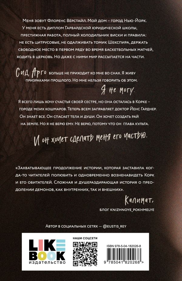 Меня зовут Сид Арго. Мой дом – город Корк, один из самых консервативных и религиозных в штате Пенсильвания. У нас есть своеобразная Библия (её называют Уставом), открыв которую, на первых ста пятидесяти страницах вы увидите свод правил, включающий обязательность молитв, служб и запреты. Запреты на всё. Нельзя громко говорить на улице. Нельзя нарушать комендантский час. Нельзя пропускать религиозные собрания. Нельзя. Нельзя. Нельзя. Ничего нельзя, кроме тайного ощущения собственной ничтожности…