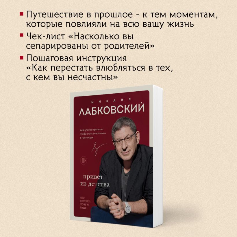 Долгожданная новинка от самого известного психолога России. На одну из самых актуальных тем в психологии - детские травмы и их влияение на взрослую жизнь. Михаил Лабковский поможет вернуться в прошлое, к моментам, которые повлияли на вашу жизнь, чтобы понять родителей, отпустить обиды и разорвать несчастливый сценарий, который вы неосознанно проигрываете многие годы.