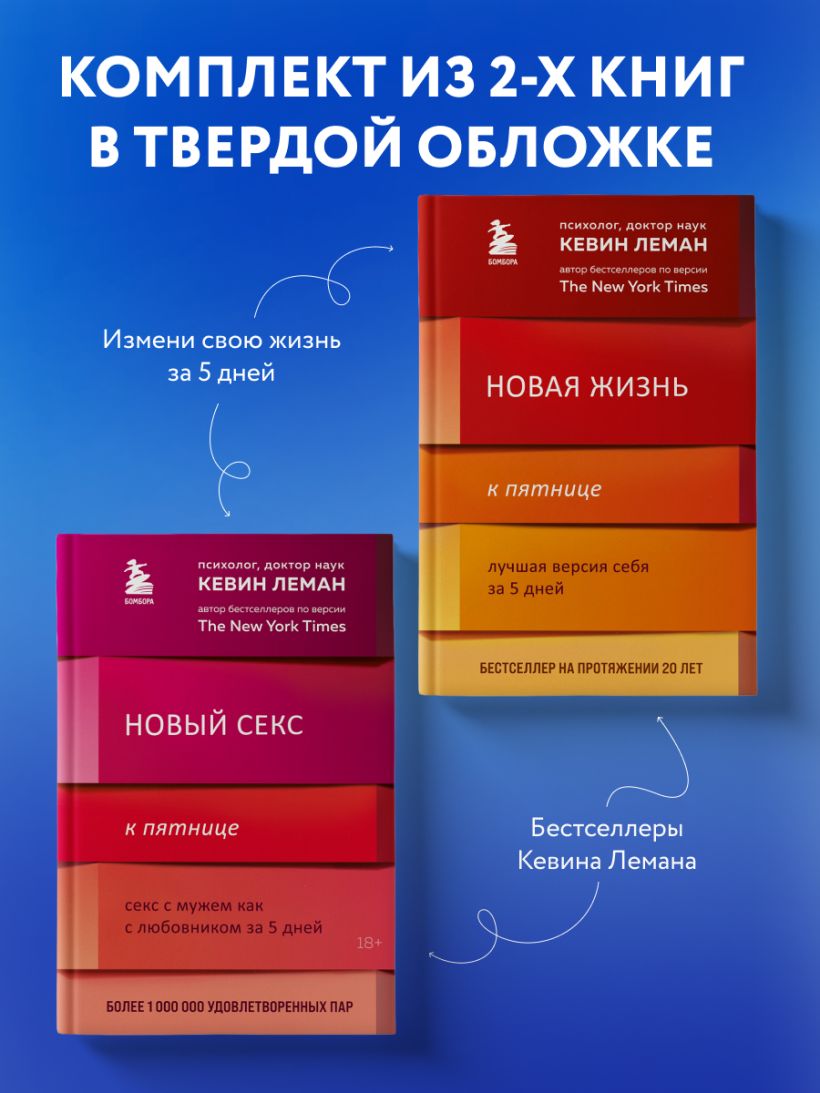 В комплекте две книги «Новая жизнь к пятнице. Лучшая версия себя за 5 дней» + «Новый секс к пятнице. Секс с мужем как с любовником за 5 дней».