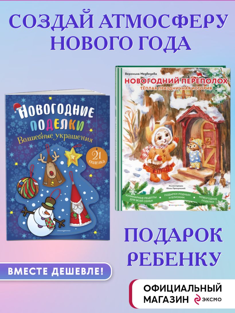 Создайте праздничное настроение с комплектом из двух новогодних книг: «Волшебные украшения» и «Новогодний переполох»!