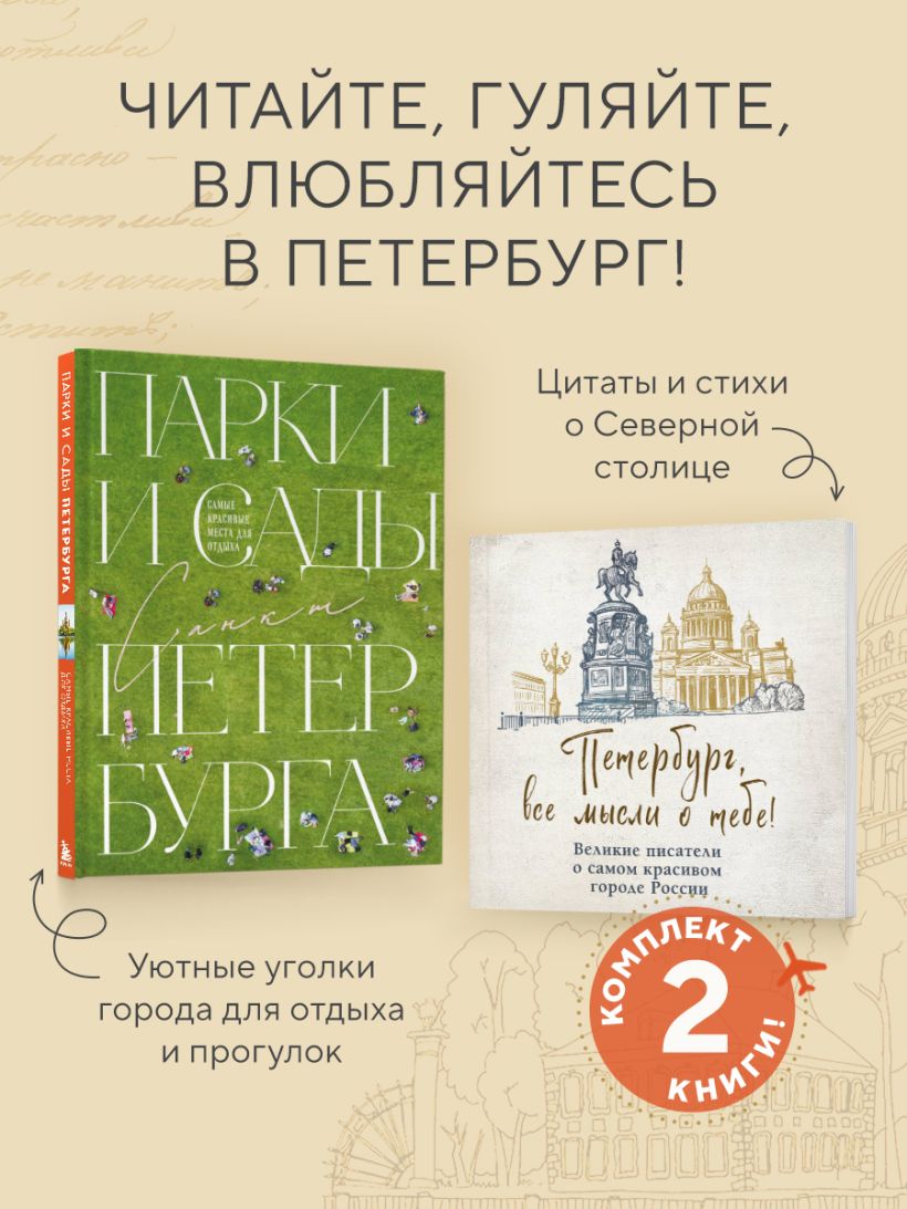 Комплект из 2-х книг Парки и сады Петербурга. Самые красивые места для отдыха и Петербург, все мысли о тебе! Великие писатели о самом красивом городе России