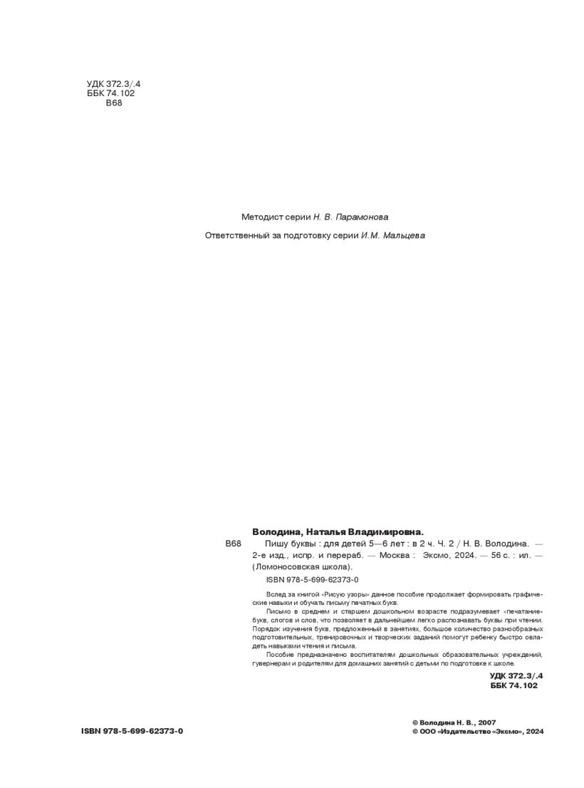 Легендарная серия обучающих пособий для развития ребенка и подготовки к школе теперь в комплектах из 2-х книг большого формата в мягкой обложке! Проверенная на практике и показавшая свою эффективность методика, умело сочетающая современные технологии обучения с лучшими классическими традициями российского образования, будет способствовать развитию навыков письма у дошкольника.