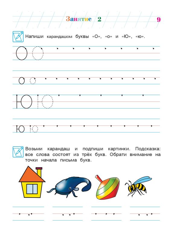 Для удобства весь материал разделен на 2 книги: часть 1 и часть 2, по 56 страниц в каждой. Выполняя занимательные упражнения, ребенок будет обводить разные типы линий по пунктиру, дорисовывать и штриховать, рисовать по точкам фигуры и писать печатные буквы и слова. Задания, расположенные по мере усложнения и ориентированные на реальные возможности детей, будут способствовать развитию внимания, памяти, воображения ребенка. Кроме того, в пособиях имеются методические рекомендации, которые подскажут, как правильно организовать занятие с ребенком.