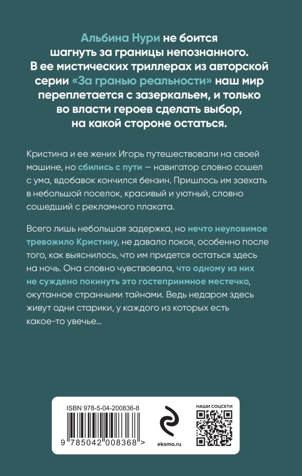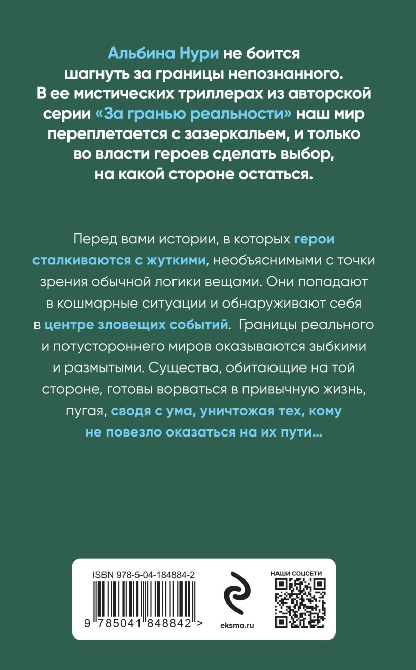 Альбина Нури не боится шагнуть за границы непознанного. В ее мистических триллерах из авторской серии "За гранью реальности" наш мир переплетается с зазеркальем, и только во власти героев сделать выбор, на какой стороне остаться.