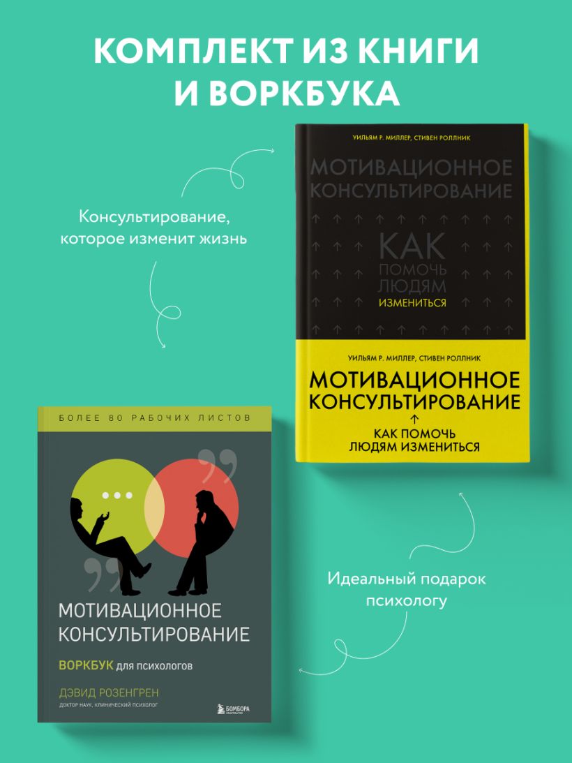 Комплект из 2-х книг по мотивационному консультированию: Мотивационное консультирование. Воркбук для психологов + Мотивационное консультирование: как помочь людям измениться (шрифтовая обложка) (ИК)