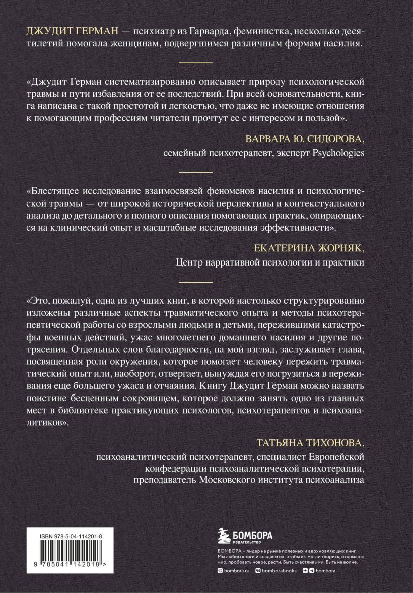 «Травма и исцеление» — это основополагающий текст о понимании людей переживших психологическую травму. Помещая индивидуальный опыт в более широкие политические рамки, психиатр из Гарварда Джудит Герман утверждает, что психологическая травма неотделима от ее социального и политического контекста. Опираясь на свое собственное исследование насилия над детьми, а также обширную литературу о ветеранах боевых действий и жертвах политического террора, она показывает удивительные параллели между частными ужасами, такими как жестокое обращение с детьми, и общественными ужасами, такими как война.