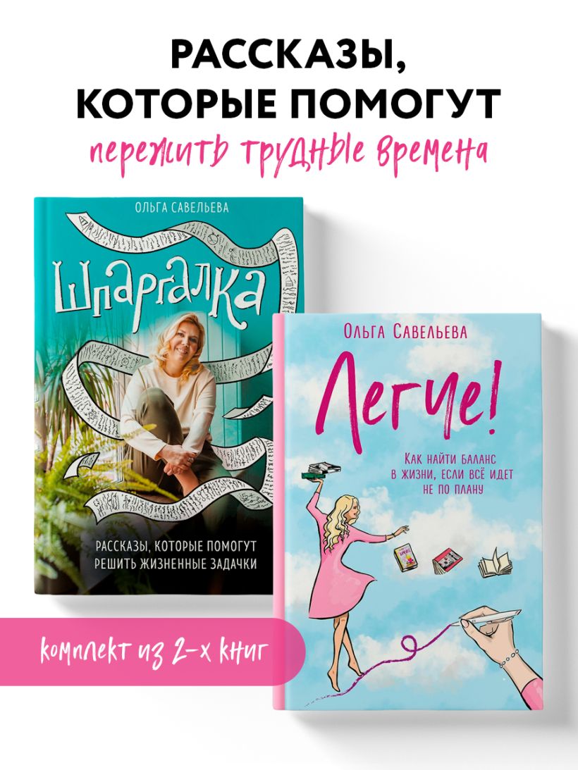 Комплект из двух книг Ольги Савельевой - автора бестселлеров "Апельсинки", "Попутчица" и др., совокупный тираж которых более 200 000 экземпляров. В своих рассказах Ольга вдохновляет искать светлые моменты в любой ситуации, ведь оптимизм, любовь и надежда – это те суперспособности, которые дремлют в глубине каждого из нас.