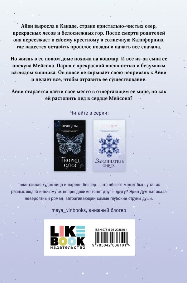 Идеально подойдет для поклонников книг «Творец слез» и «Заклинатель снега», фильмов «Реальная любовь» и «Отпуск по обмену», а также фанатов творчества Эрин Дум и Кэрри Лейтон.