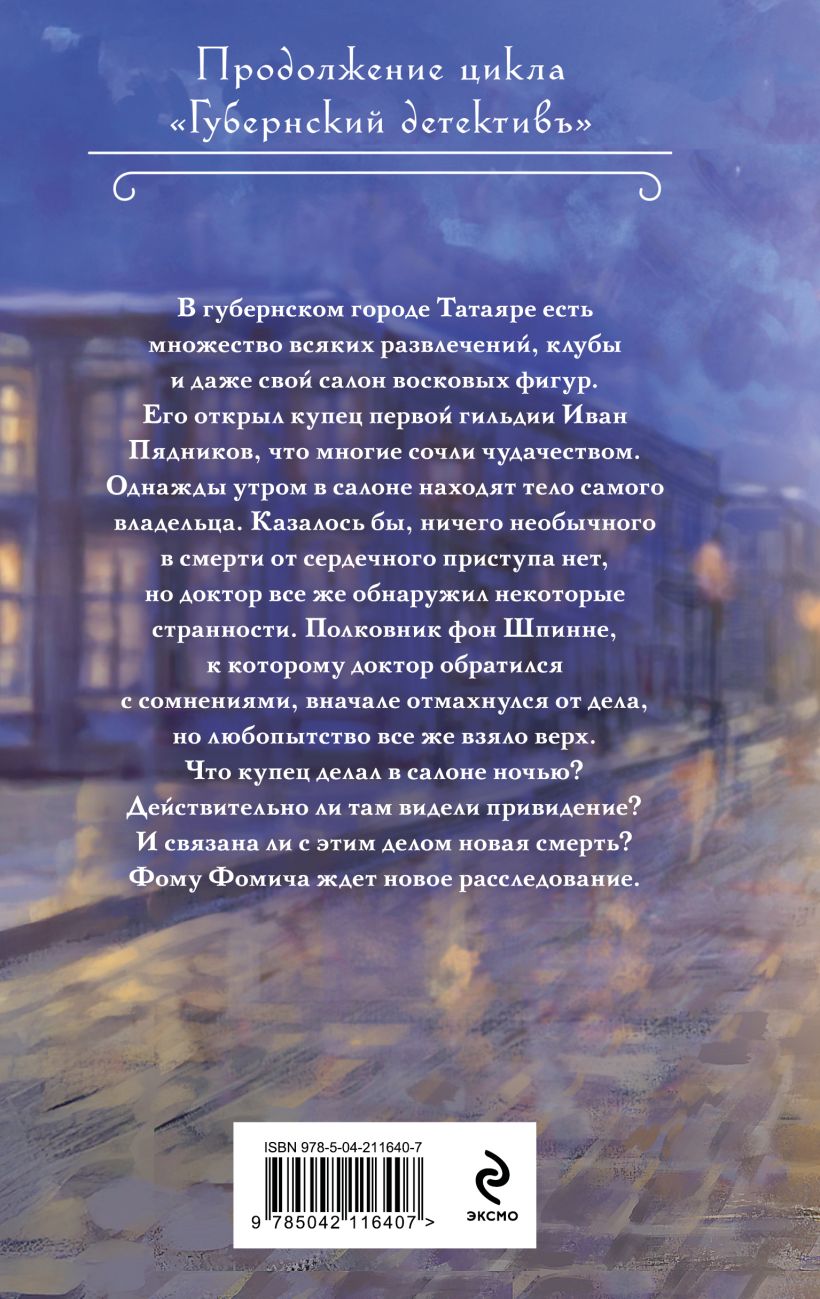 Однажды в собственном салоне восковых фигур находят купца Пядникова. Смерть кажется совершенно естественной, но полковник фон Шпинне прислушивается к сомнениям доктора и начинает новое расследование. Что купец делал в салоне ночью? Действительно ли там видели привидение?