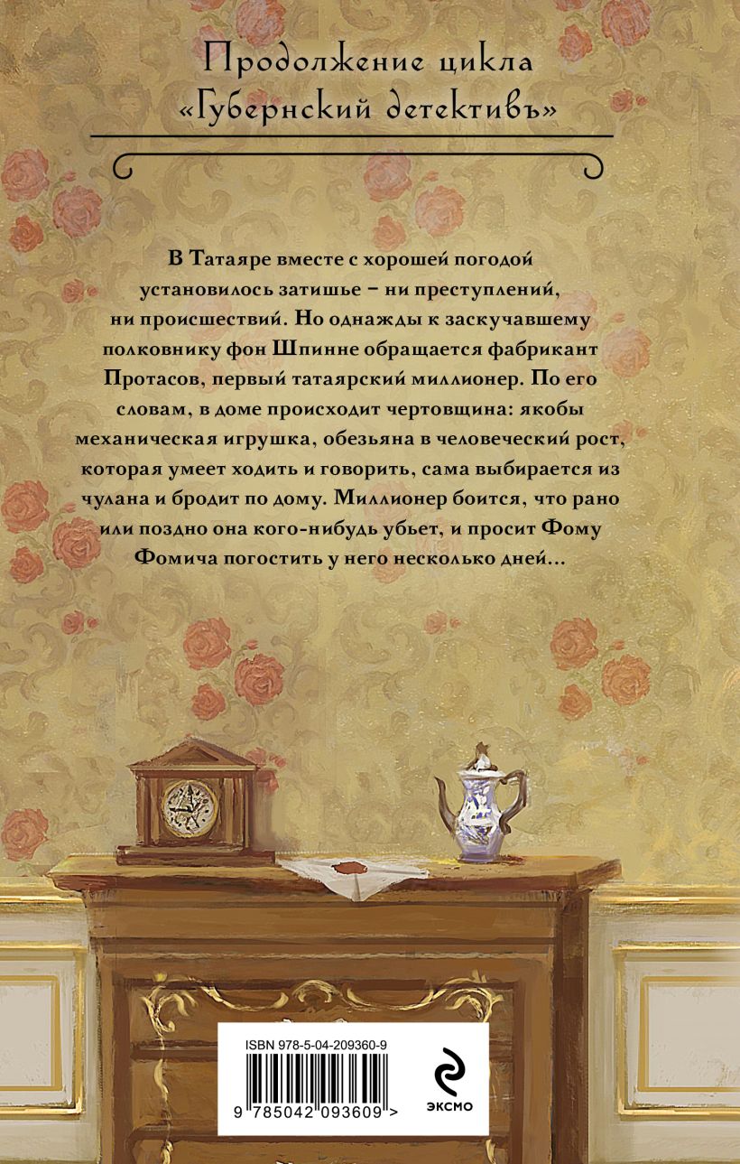 В маленьком городке Российской губернии дела расследует обаятельный начальник сыскной полиции барон фон Шпинне. Летом ему становится скучно, но однажды к нему обращается фабрикант Протасов, первый татаярский миллионер. По его словам, механическая игрушка, обезьяна в человеческий рост, загадочным образом оживает по ночам…