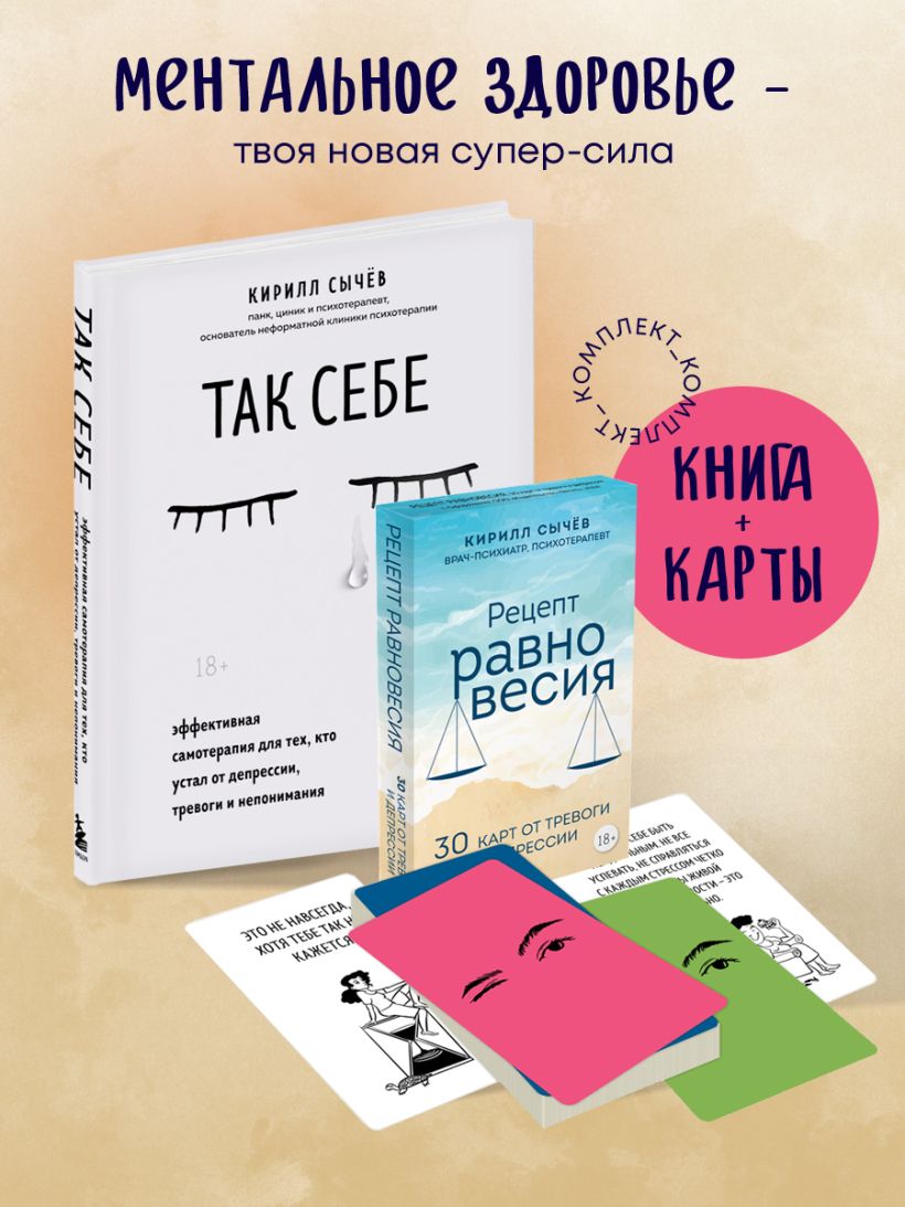 Этот набор — настоящая палочка-выручалочка для тех, кому пришлось столкнуться с такими недугами, как депрессия и тревожность. А, как раскрывает психотерапевт Кирилл Сычев в своей книге, сталкиваться с ними в современном обществе так или иначе приходится всем.
