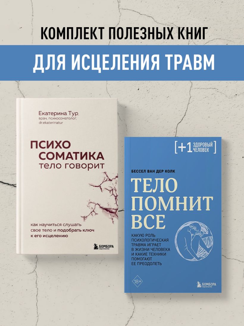 Комплект из 2-х бестселлеров по психологии! Автор книги "Психосоматика: тело говорит" Екатерина Тур рассказывает, как важно слушать свое тело и уметь распознавать его сигналы. Это ценная книга о влиянии наших мыслей и поведения на здоровье всего организма. "Тело помнит все" - БЕСТСЕЛЛЕР New York Times. Права проданы в 18 стран