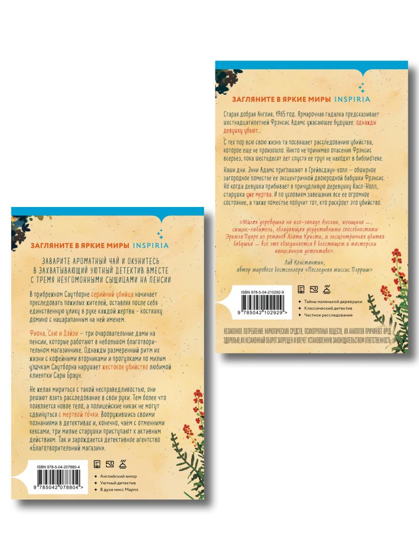 Не желая мириться с такой несправедливостью, они решают взять расследование в свои руки. Тем более что появляется новое тело, а полицейские никак не могут сдвинуться с мертвой точки. Вооружившись своими познаниями в детективах и, конечно, чаем с отменными кексами, три милые старушки приступают к активным действиям. Так и зарождается Детективное агентство «Благотворительный магазин».