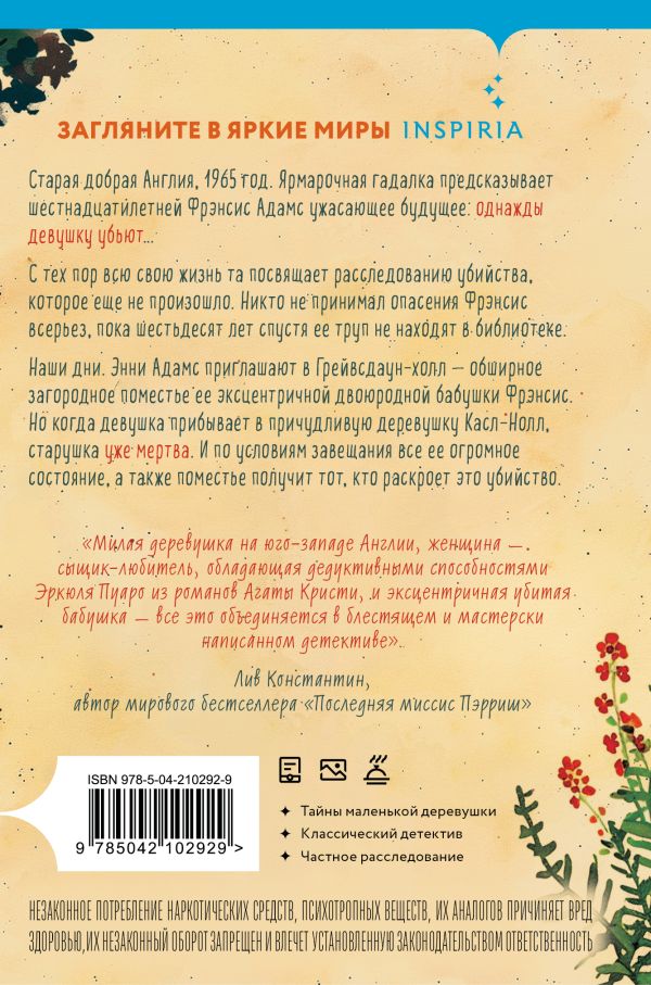 Старая добрая Англия, 1965 год. Ярмарочная гадалка предсказывает шестнадцатилетней Фрэнсис Адамс ужасающее будущее: однажды девушку убьют… С тех пор всю свою жизнь та посвящает расследованию убийства, которое еще не произошло. Никто не принимал опасения Фрэнсис всерьез, пока, шестьдесят лет спустя, ее труп не находят в библиотеке.