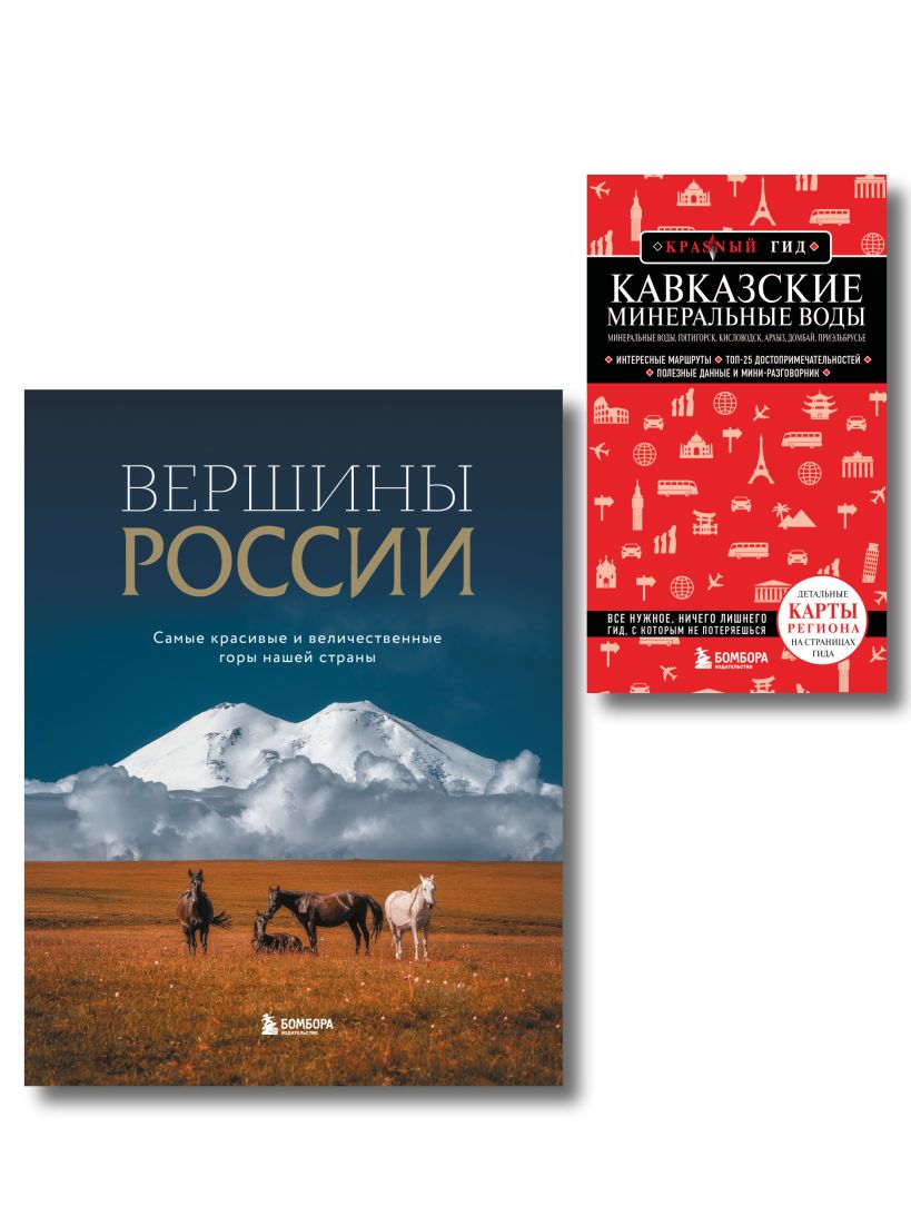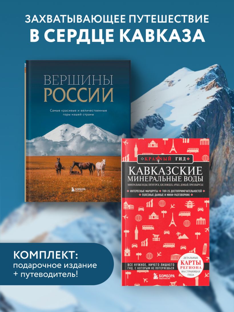 В комплект входят 2 книги: Вершины России. Самые красивые и величественные горы нашей страны и Кавказские Минеральные Воды — Минеральные воды, Пятигорск, Кисловодск, Архыз, Домбай, Приэльбрусье (4-е изд., испр. и доп.)