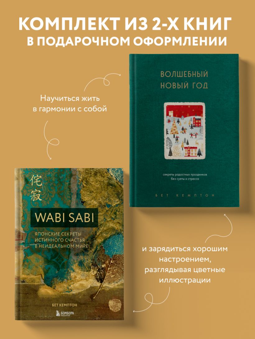 В комплекте две книги «Wabi Sabi. Японские секреты истинного счастья в неидеальном мире» + «Волшебный Новый год. Секреты радостных праздников без суеты и стресса (новое оформление)».