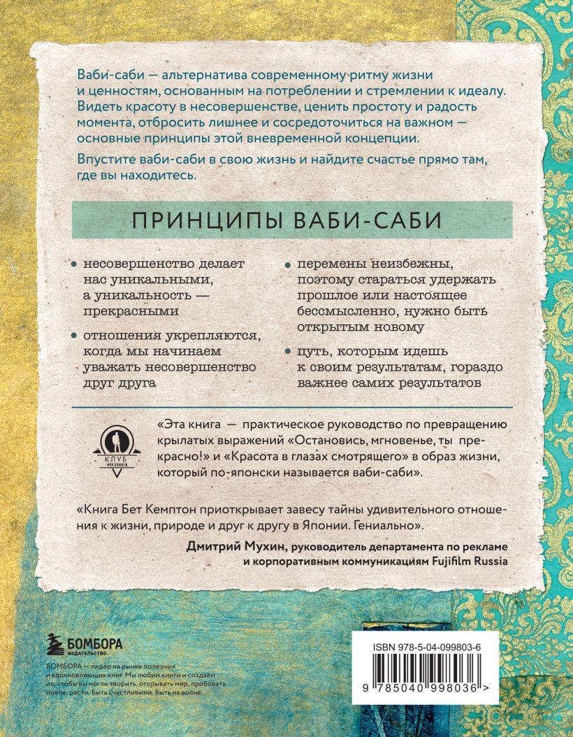 Эта книга — предложение расслабиться и ощутить красоту собственного бытия в каждом моменте, избавить его от всего напускного и открыть то, что внутри. Впустите ваби-саби в свою жизнь и найдите счастье прямо там, где вы находитесь.