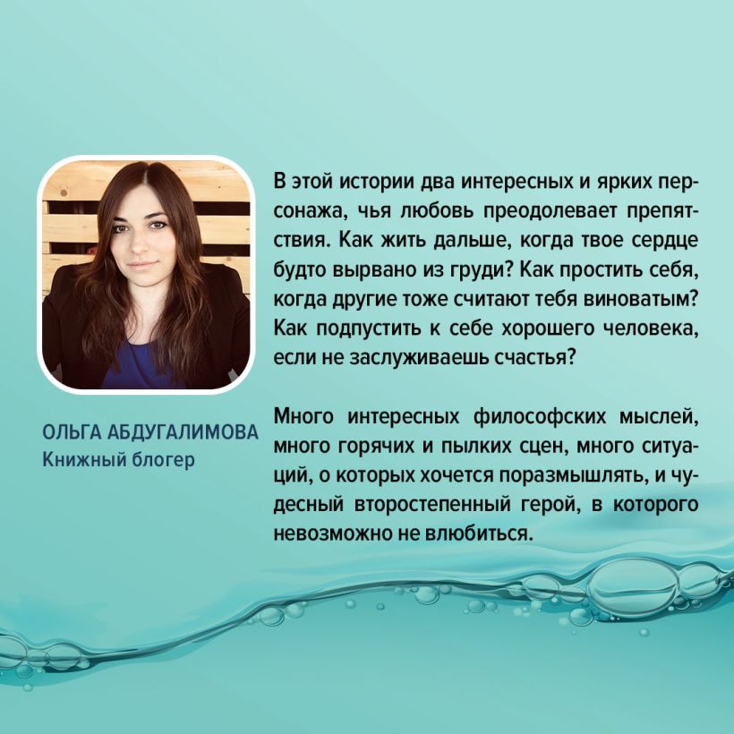 Вода — главный символ этой книги. Та, что тянет на дно, когда мы растворяемся в партнере. Та, которой становимся сами, окончательно растворившись в нем. И та, которая может навсегда забрать то, что нам дорого.