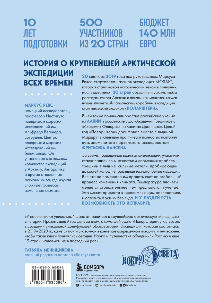 20 сентября 2019 года стартовала крупнейшая арктическая экспедиция всех времен: корабль "Поларштерн" вышел из порта Тромсё, чтобы "вмерзнуть" в лед на Северном полюсе. Маршрут экспедиции практически полностью повторяет путь знаменитого норвежского исследователя Фритьофа Нансена на корабле "Фрам". На борту "Поларштерна" ученые из 20 стран проведут целый год, изучая последствия изменения климата в Арктике. В своей книге Маркус Рекс, руководитель экспедиции MOSAiC, показывают хронику этого уникального проекта. "Закованные во льдах" — это история великого исследовательского приключения и в то же время мощный взгляд на трагические последствия изменения климата.