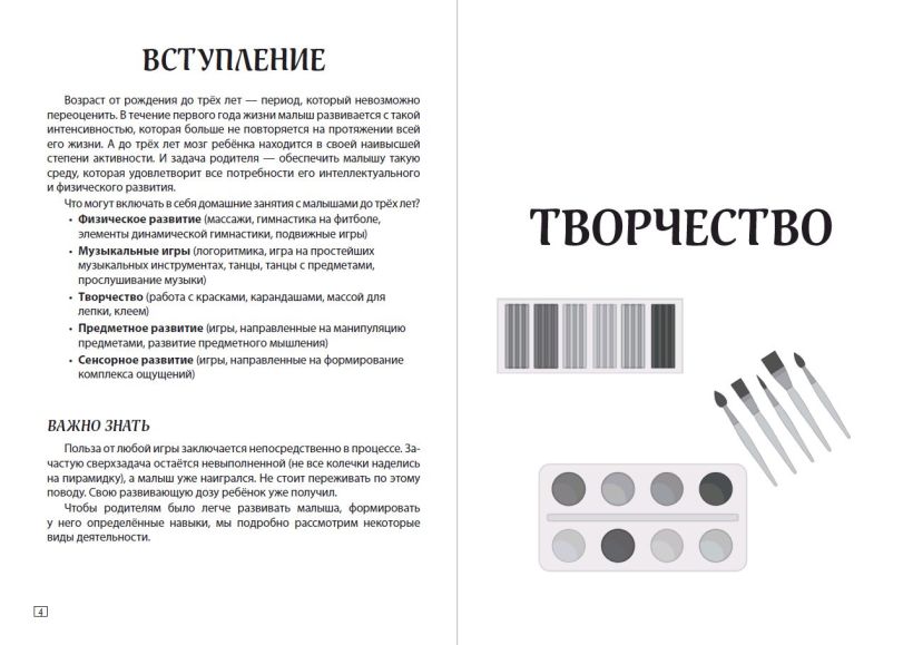 Основная задача пособия — повысить уровень IQ малыша, расширить его познавательные способности и кругозор в процессе весёлой увлекательной игры. Путешествуя по страницам книги, малыш будет радоваться, узнавая знакомые рисунки, и с удовольствием рассматривать новые; познакомится с основными цветами; научится различать времена года; находить сходства и отличия; дорисовывать недостающие элементы, а также сможет развить внимание, память, воображение и речь. Пальчиковая гимнастика с занимательными стихотворениями доставит малышу удовольствие и поможет развить мелкую моторику, а тщательно подобранные яркие иллюстрации будут стимулировать интерес ребенка к занятиям. Кроме того, внизу каждой страницы имеются подсказки для взрослых, которые помогут провести занятие максимально эффективно. Предназначено родителям малышей 1-2 лет, воспитателям ДОУ, педагогов.