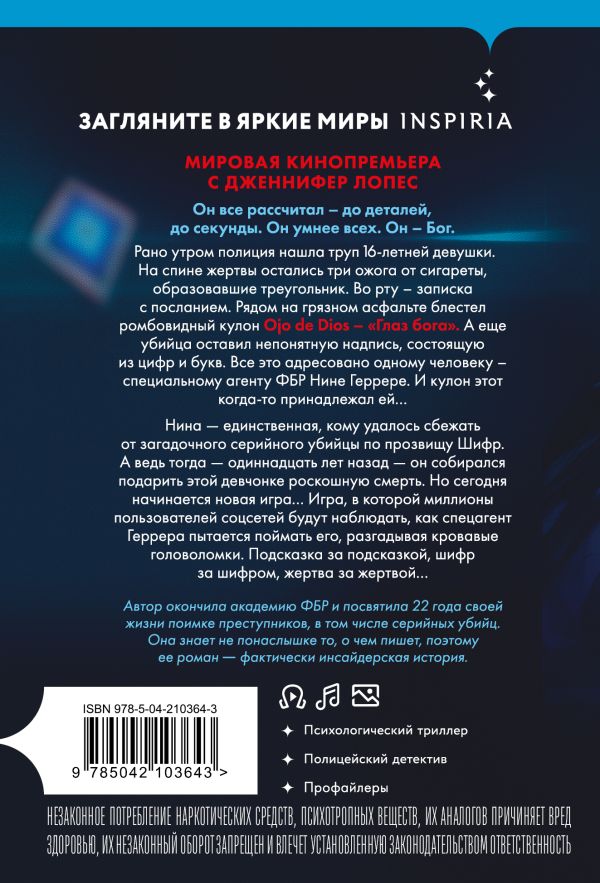 Рано утром полиция нашла труп 16-летней девушки. На спине жертвы остались три ожога от сигареты, образовавшие треугольник. Во рту — записка с посланием. Рядом на грязном асфальте блестел ромбовидный кулон Ojo de Dios — «Глаз бога». А еще убийца оставил непонятную надпись, состоящую из цифр и букв. Все это адресовано одному человеку — специальному агенту ФБР Нине Геррере. И кулон этот когда-то принадлежал ей…