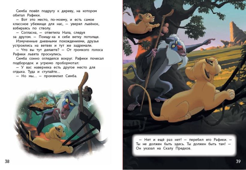 Львёнок Симба так любопытен: ему не терпится узнать обо всём, что происходит вокруг! А жизнь в саванне не утихает даже ночью… Скорее открывайте эту книгу и отправляйтесь навстречу новым приключениям вместе с Симбой и Налой!