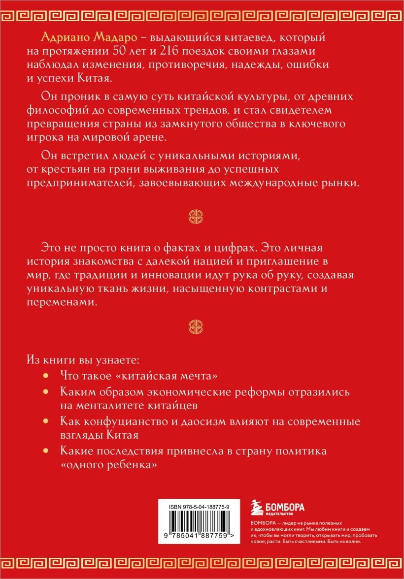 Многие искатели приключений, исследователи и религиозные миссионеры пытались поведать миру о Поднебесной, однако лишь немногим удалось оценить всю глубину и многообразие этой огромной страны. Среди этих счастливчиков — Мадаро Адриано, автор этой книги и один из самых известных китаеведов в мире. За 50 лет он совершил 216 поездок Китай, наблюдал за трансформацией страны, видел ее противоречия и успехи, а также изучал причины ее ошибок и надежд. От времен Марко Поло до эпохи современного китайского социализма, от тибетского вопроса до напряженных отношений с Соединенными Штатами, от протестов в Гонконге до эпидемий загадочных вирусов — всё это рассказ о нации, которая играет ключевую роль в глобальной геополитике. Глубокое исследование, в которое вам посчастливится погрузиться благодаря этой книге, стремительно обогатит ваши познания и позволит преисполниться еще большей любовью к этой загадочной стране!