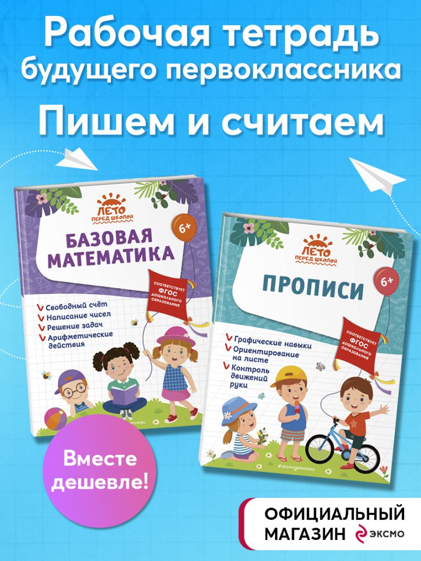 В комплект входят два пособия для комплексной подготовки дошкольника к обучению в школе: «Базовая математика» и «Прописи».