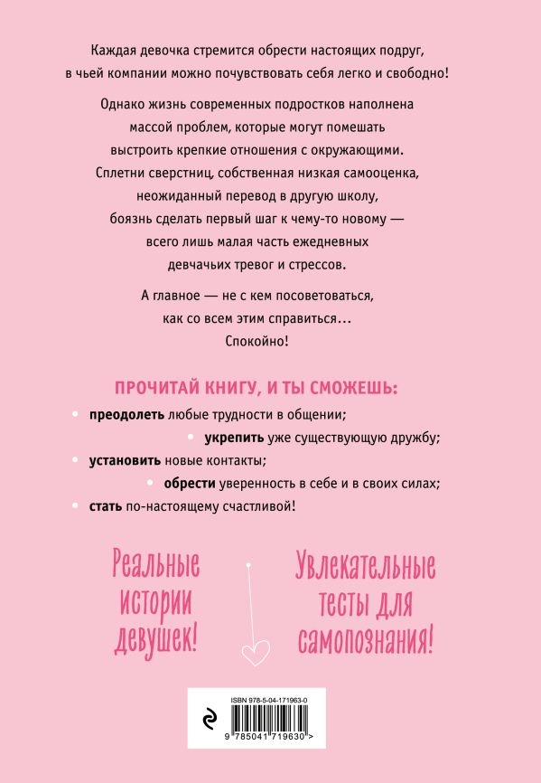 Книга «С любовью к себе. Книга о том, как научиться дружить и стать счастливой» включает в себя увлекательные тесты для самопознания и практические советы для девочек от Люси Хеммен — известного психолога, успешно работающего именно с подростками. Эти рекомендации основаны на реальных историях девушек и охватывают самые разные темы: как правильно выходить из зоны комфорта и заводить новых подруг, как справляться со сплетнями и разрешать конфликтные ситуации, как находить баланс между личными интересами и интересами окружающих, и в итоге — как стать успешной в общении!