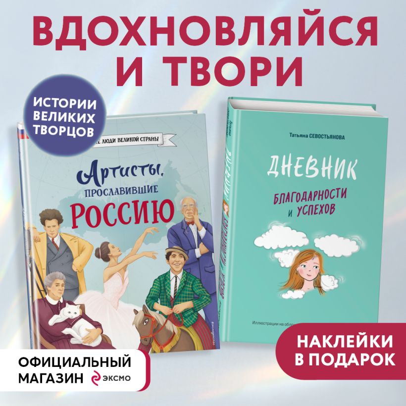 Комплект из 2 книг с наклейками. Дневник благодарности и успехов + Артисты, прославившие Россию