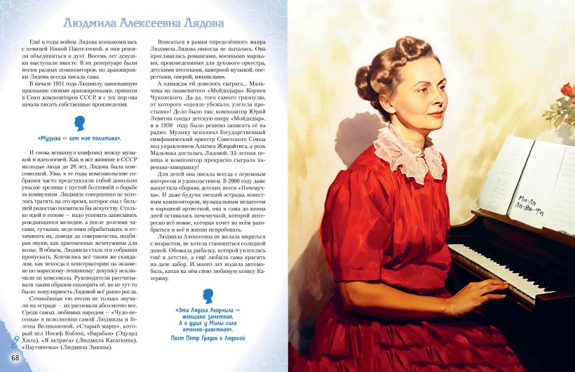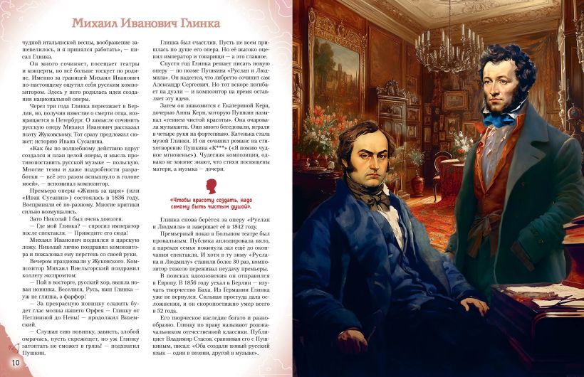 В этой увлекательной книге тебя ждёт 20 историй отечественных музыкантов, певцов, композиторов, чьи имена навсегда прославили Россию. Что за выдающиеся произведения они написали и исполнили? Какими они были в детстве и юности, благодаря чему сумели отыскать своё предназначение, что помогло им преодолеть препятствия на пути и стать сильными, вдохновляющими других личностями? Найди собственный пример для подражания и узнай, какие качества в себе развивать, чтобы стать похожим на великих музыкантов, которыми гордится наша страна!