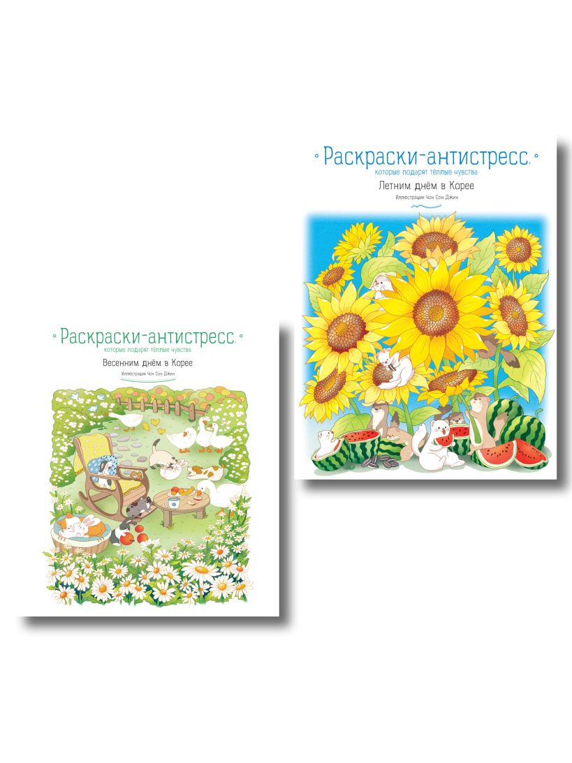 Комплект из 2 раскрасок-антистресс. Весенним днем в Корее + Летним днем в Корее (ИК)