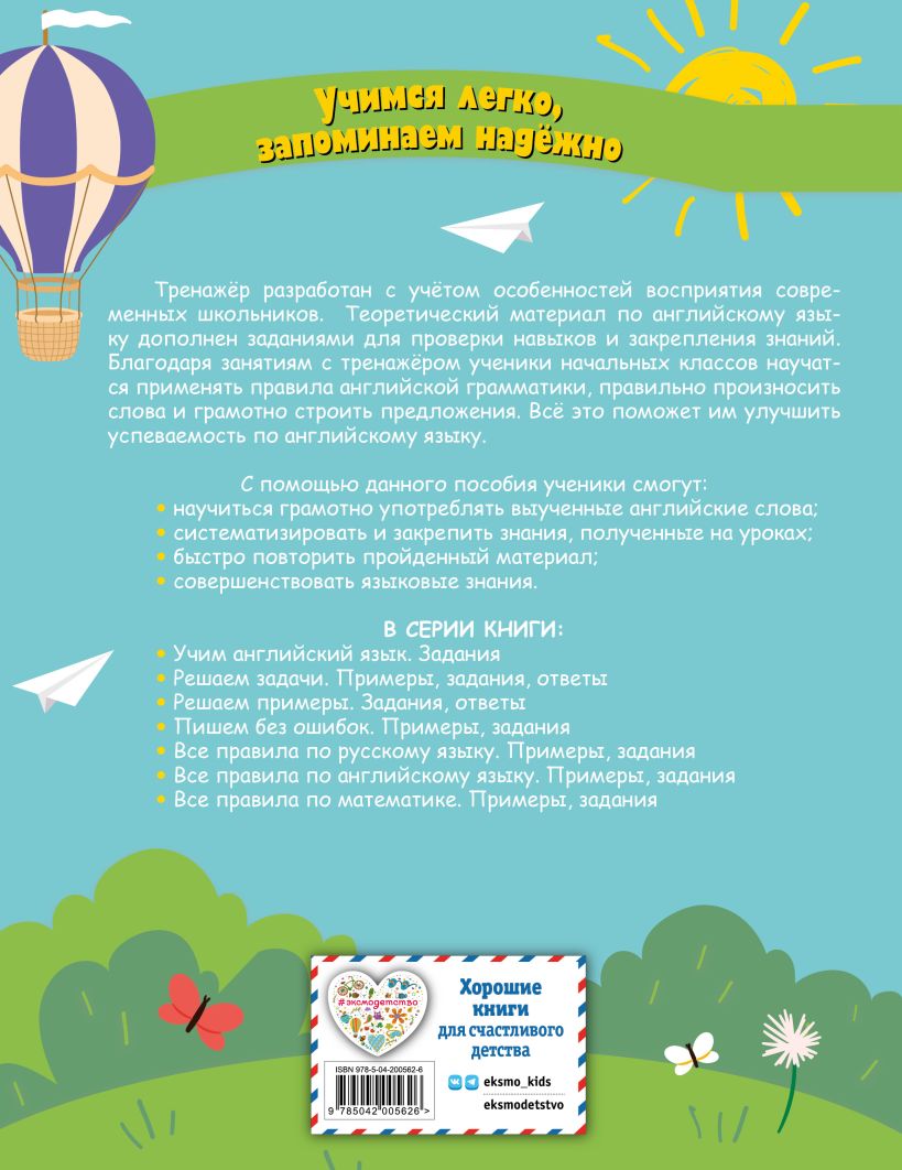 Комплект из двух тетрадей-тренажёров станет надёжным помощником младших школьников в освоении английского языка. Уникальные задания разработаны с учётом требований ФГОС и направлены на устранение пробелов в знаниях, формирование навыков правописания, произношения и построения предложений. Учебные пособия помогут систематизировать и закрепить материал, полученный на уроках, а также подготовиться к проверочным и контрольным работам без лишних сложностей. Благодаря эффективной методике школьники не просто запомнят правила, но и научатся уверенно применять их на практике. Комплект способствует лёгкому усвоению большого объёма информации, обеспечивая устойчивые результаты обучения.