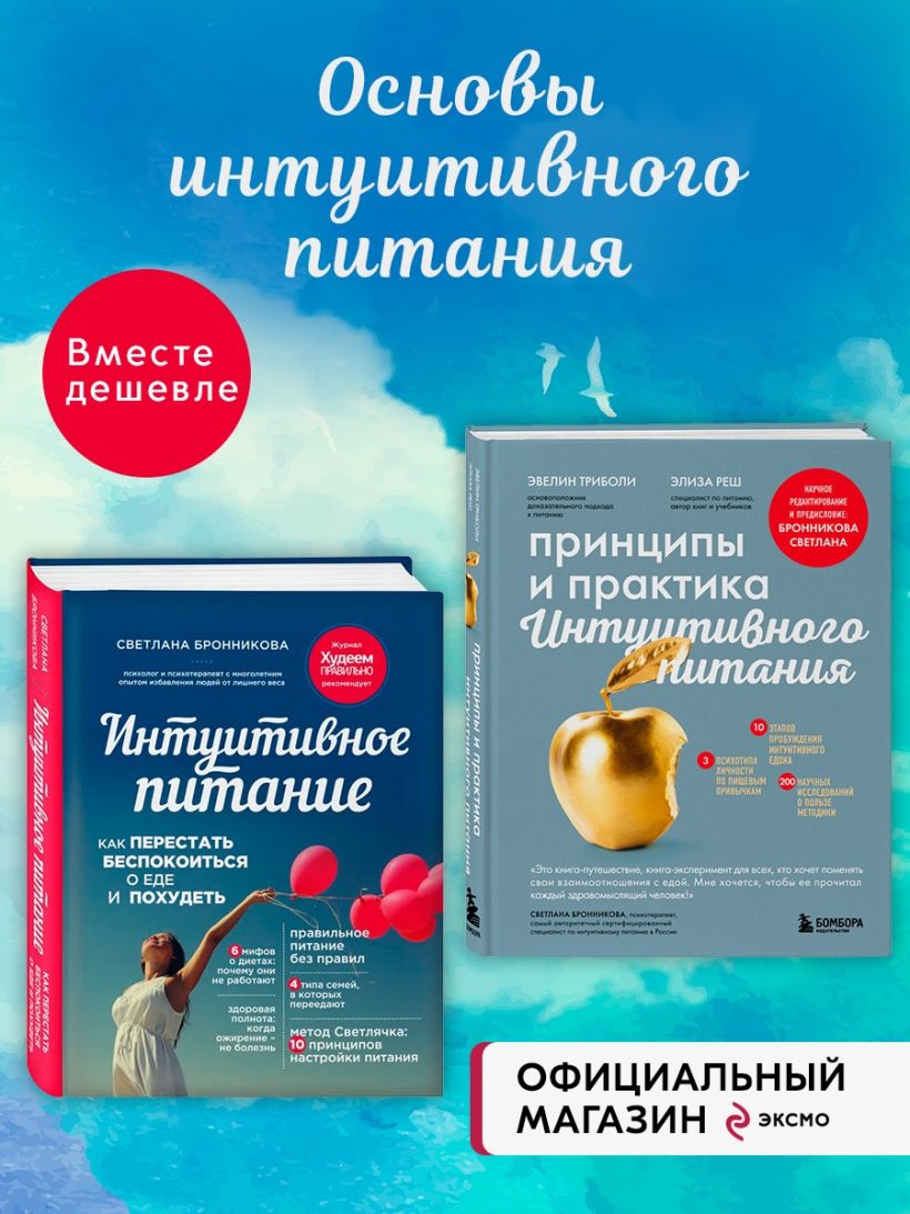 В комплект вошли 2 книги: "Принципы и практика интуитивного питания" и "Интуитивное питание: как перестать беспокоиться о еде и похудеть"