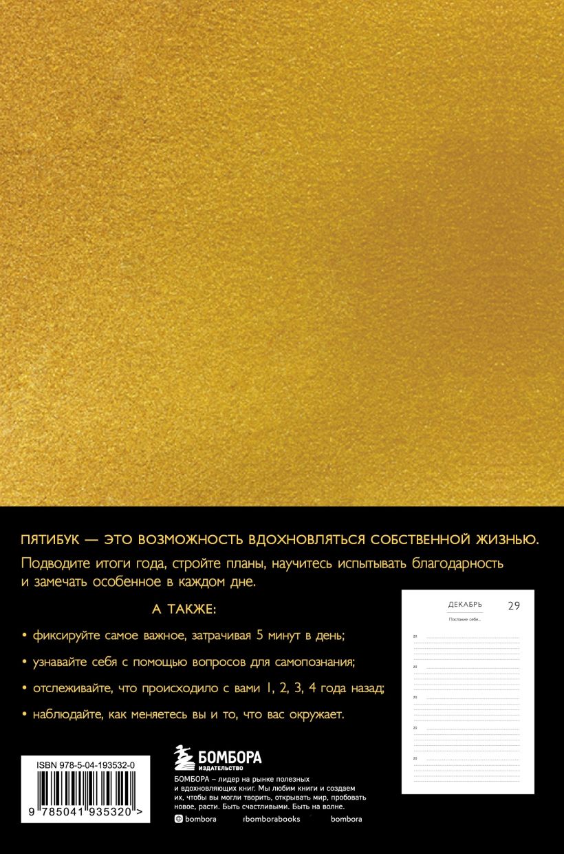 Золотое оформление на мерцающей дизайнерской бумаге. Пятибук станет отличным подарком для себя или близких. А формат книжки впишется на вашу полку.