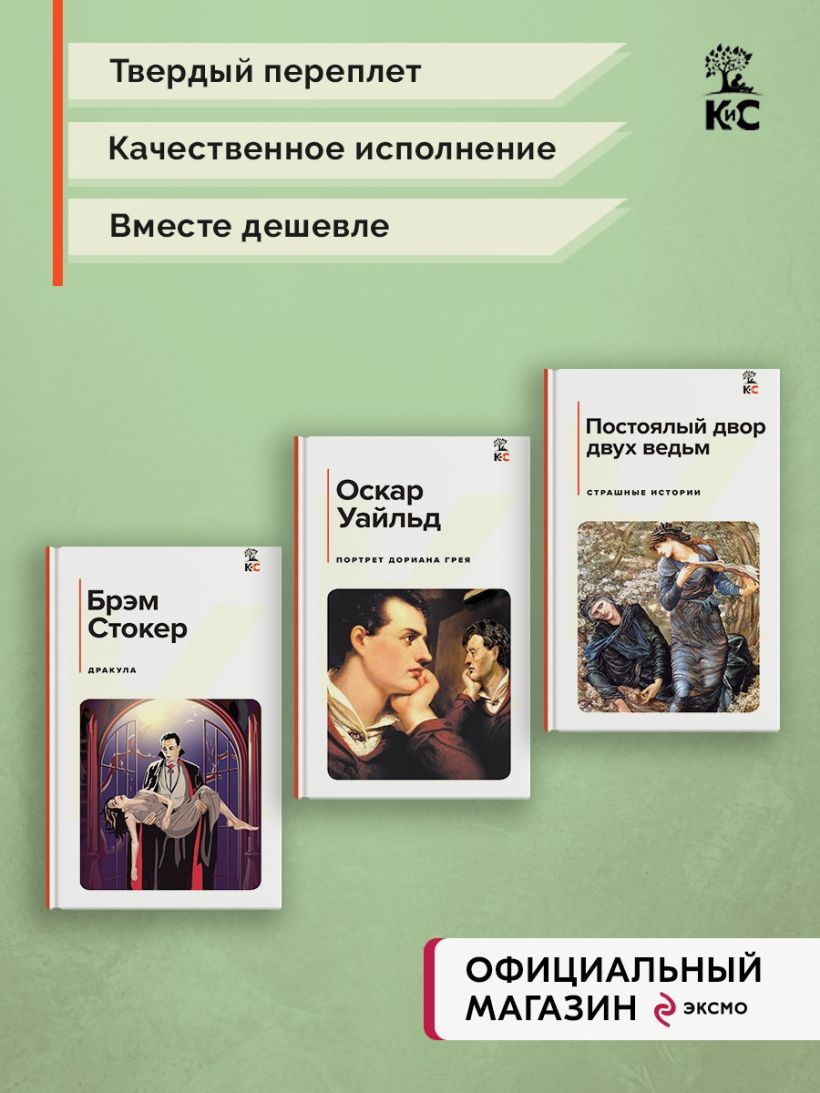 В комплект вошли 3 книги: "Дракула", "Портрет Дориана Грея", "Постоялый двор двух ведьм".