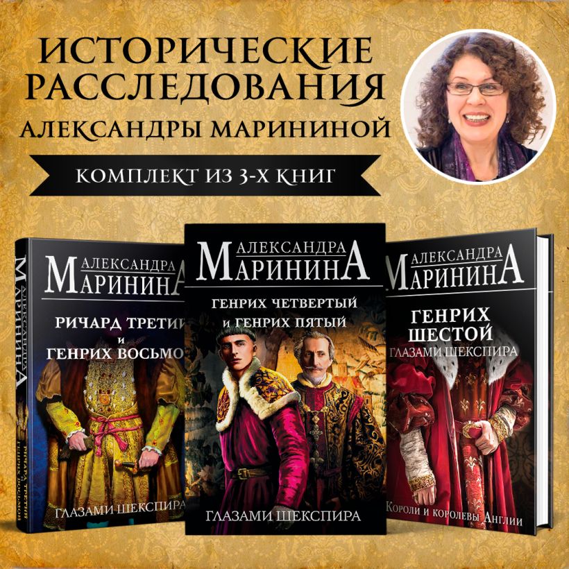 Исторические расследования Александры Марининой. Комплект из 3-х книг: 1) Генрих Четвертый и Генрих Пятый глазами Шекспира; 2) Генрих Шестой глазами Шекспира; 3) Ричард Третий и Генрих Восьмой глазами Шекспира. — 5 знаменитых английских королей под одной бандеролью!