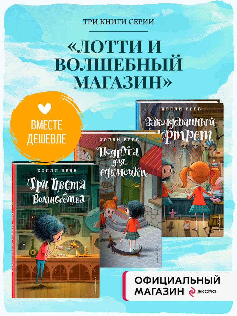 Комплект из 3-х книг Холли Вебб: Лотти и волшебный магазин: Три цвета волшебства, Подруга для ведьмочки и Заколдованный портрет.