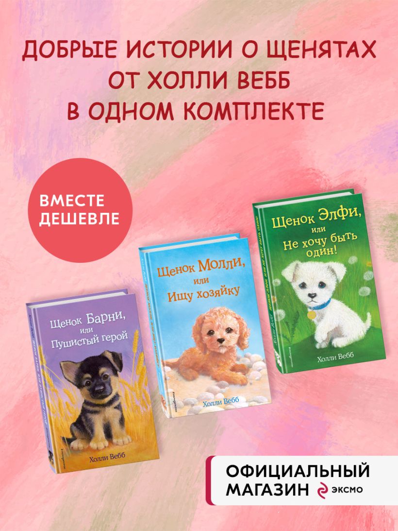 Комплект из 3-х книг Холли Вебб: Щенок Барни + Щенок Элфи + Щенок Молли. (ИК)
