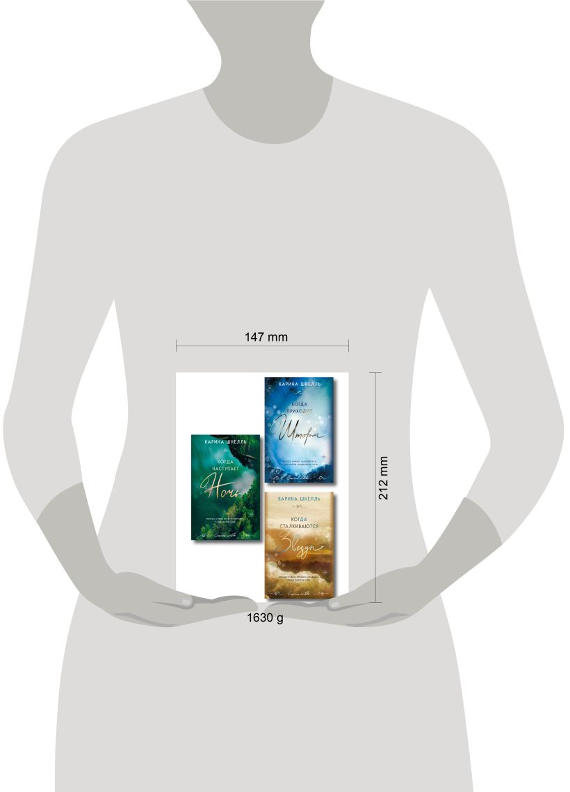 Комплект из трех книг немецкой писательницы Карины Шнелль: «Когда приходит шторм», «Когда наступает ночь», «Когда сталкиваются звезды». Эти истории любви на фоне невероятной природы не только увлекательны, но и полезны, потому что многие читатели увидят в главных героях себя.