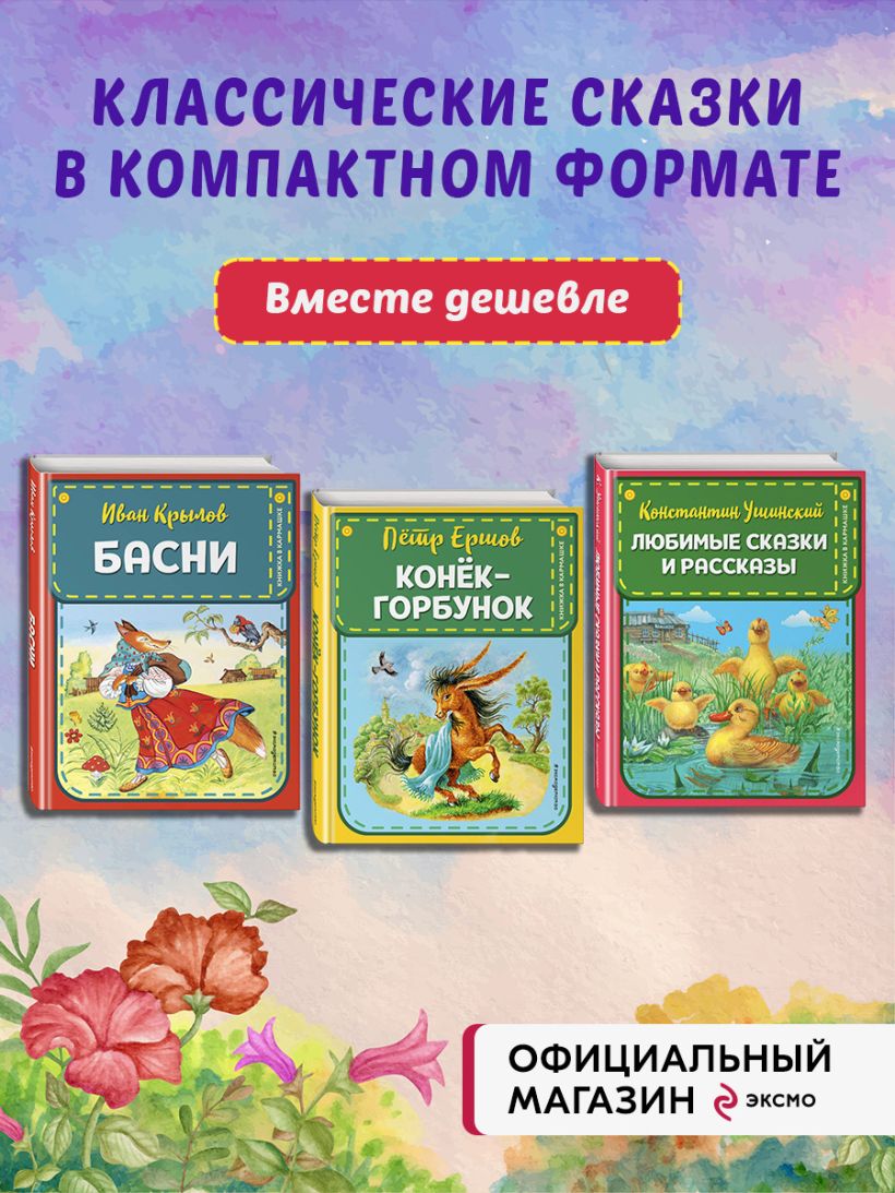 Сказка о Коньке-горбунке Петра Ершова, добрые истории о природе, зверях и птицах Константина Ушинского, поучительные басни Ивана Крылова увлекут детей и взрослых. В произведениях вы встретите и размышления об окружающем мире, и сказочную атмосферу, и народный дух, а дополняют их красочные иллюстрации Игоря Егунова, Владимира и Марины Белоусовых, Анастасии Басюбиной.