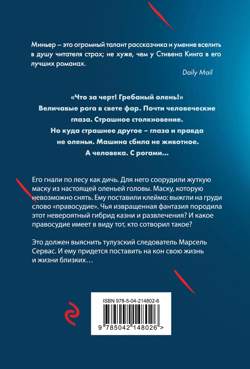 Его гнали по лесу, как дичь. Для него соорудили жуткую маску из настоящей оленьей головы. Маску, которую невозможно снять. Ему поставили клеймо: выжгли на груди слово «правосудие». Чья извращенная фантазия породила этот невероятный гибрид казни и развлечения? И какое правосудие имеет в виду тот, кто сотворил такое?