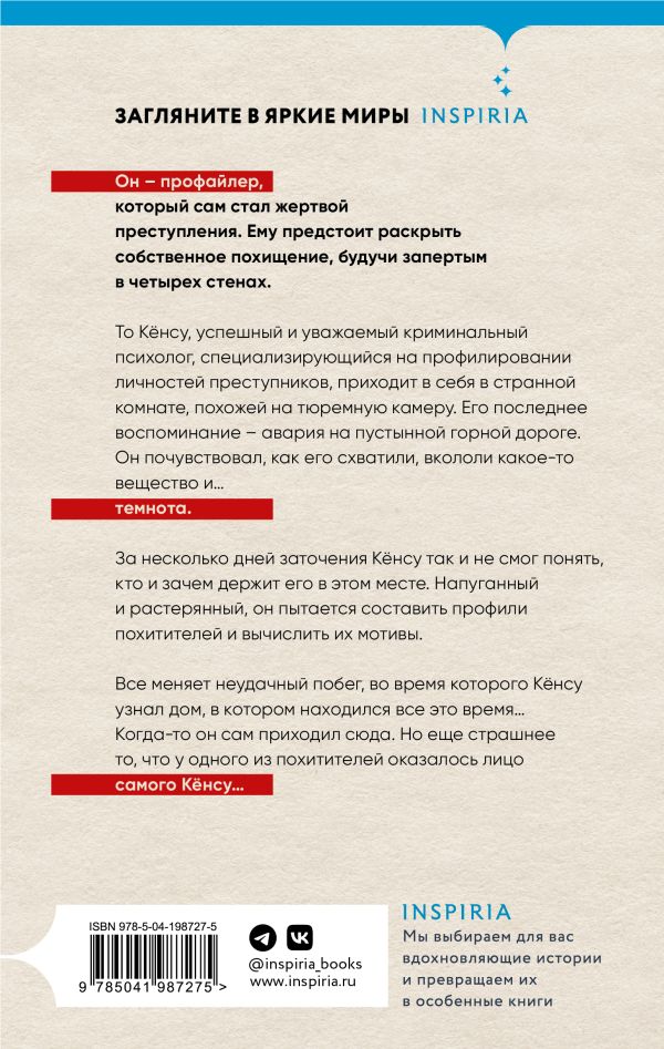 То Кёнсу, успешный и уважаемый криминальный психолог, специализирующийся на профилировании личностей преступников, приходит в себя в странной комнате, похожей на тюремную камеру. Его последнее воспоминание – авария на пустынной горной дороге. Он почувствовал, как его схватили, вкололи какое-то вещество и… темнота.