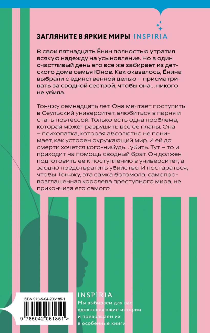 Тончжу семнадцать лет. Она мечтает поступить в Сеульский университет, влюбиться в парня и стать поэтессой. Только есть одна проблема, которая может разрушить все ее планы. Она – психопатка, которая абсолютно не понимает, как устроен окружающий мир. И ей до смерти хочется кого-нибудь… убить. Тут – то и приходит на помощь сводный брат. Он должен подготовить ее к поступлению в университет, а заодно предотвратить убийство. И постараться, чтобы Тончжу, эта самка богомола, самопровозглашенная королева преступного мира, не прикончила его самого.